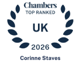 Legal 500 UK 2026 ranked Corinne as a “Leading Partner” in the area of Partnership law: ” Corinne Staves stands out for her knowledge and experience. She is always available to talk things through in a helpful manner.”